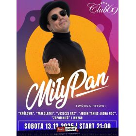 bilety: Miły Pan to pseudonim artystyczny Piotra Kołaczyńskiego, wokalisty urodzonego w 1996 roku w Warszawie. Przygodę z muzyką rozpoczął w wieku 17 lat, początkowo tworząc wyłącznie dla siebie i grona najbliższych znajomych. Przełom nastąpił podczas występu w Disco Star, gdzie po raz pierwszy publicznie zaprezentował swój utwór Królowa. Co prawda w programie nie odniósł żadnego sukcesu, ale efekt był lepszy niż gdyby go wygrał. We wrześniu 2018 roku podpisał kontrakt z wytwórnią Lemon Records, a kiedy teledysk do utworu Królowa osiągnął 4 000 000 odsłon na YouTube, w internecie wywołała się prawdziwa burza. Fani zarzucają jurorom problemy ze wzrokiem i słuchem, gdyż nie dali szansy zaprezentować się Miłemu Panu w dalszej części programu. Bilety do nabycia na: KupBilecik.plMiły Pan artyści: Piotr KołaczyńskiMiły Pan to pseudonim artystyczny Piotra Kołaczyńskiego, wokalisty urodzonego w 1996 roku w Warszawie. Przygodę z muzyką rozpoczął w wieku 17 lat, początkowo tworząc wyłącznie dla siebie i grona najbliższych znajomych. Przełom nastąpił podczas występu w Disco Star, gdzie po raz pierwszy publicznie zaprezentował swój utwór Królowa. Co prawda w programie nie odniósł żadnego sukcesu, ale efekt był lepszy niż gdyby go wygrał. We wrześniu 2018 roku podpisał kontrakt z wytwórnią Lemon Records, a kiedy teledysk do utworu Królowa osiągnął 4 000 000 odsłon na YouTube, w internecie wywołała się prawdziwa burza. Fani zarzucają jurorom problemy ze wzrokiem i słuchem, gdyż nie dali szansy zaprezentować się Miłemu Panu w dalszej części programu. Bilety do nabycia na: KupBilecik.pl |